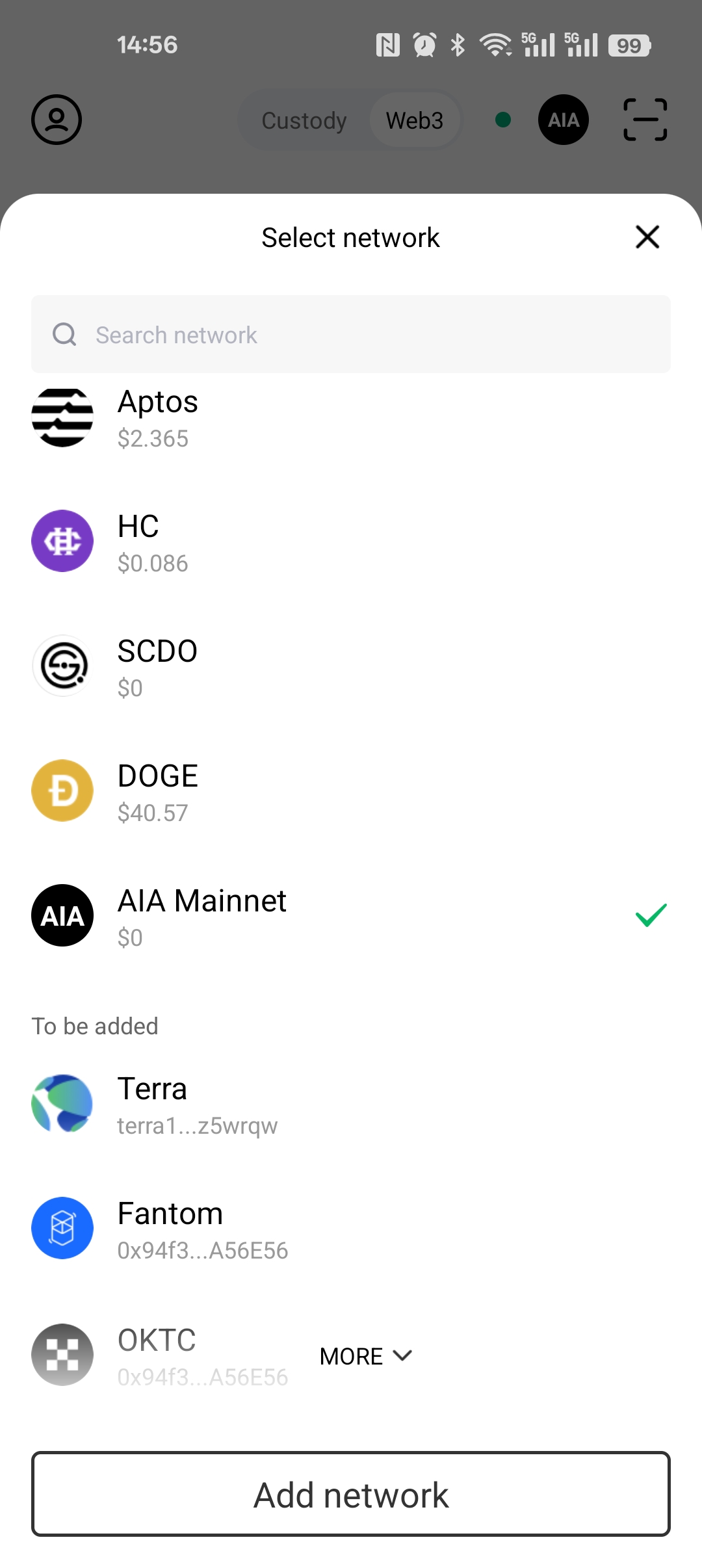 - Click the network switch icon in the top-left corner and switch to your desired custom network.