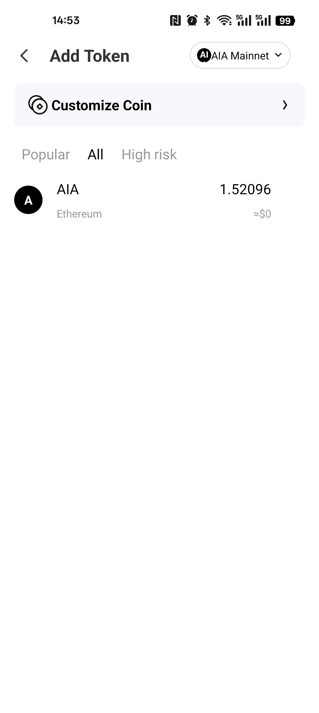 - Select 【Customize Coin】 to add a custom network token.