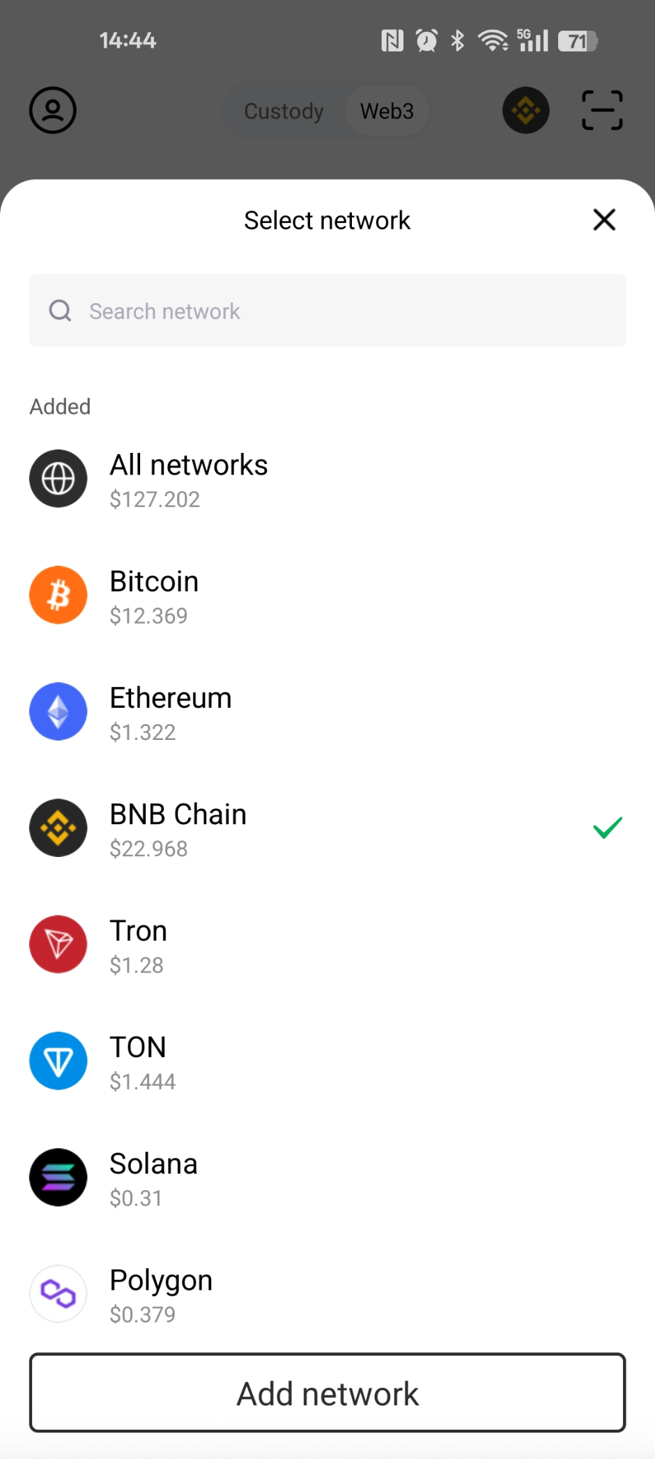 - Click the network switch icon in the top-left corner to expand the network selection list.