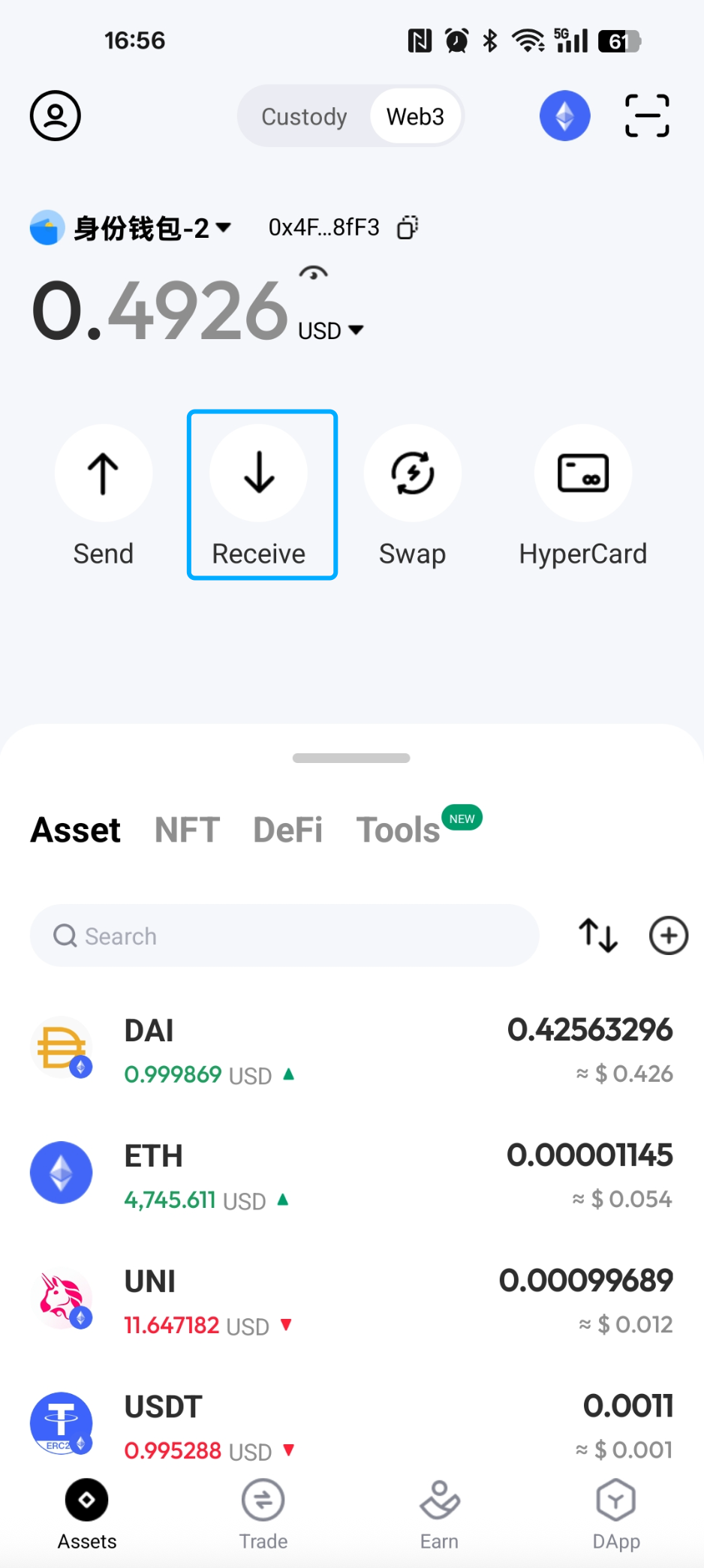 • If you are using the HPX Web3 App’s software wallet account as the receiving account, you can directly view and copy the address.