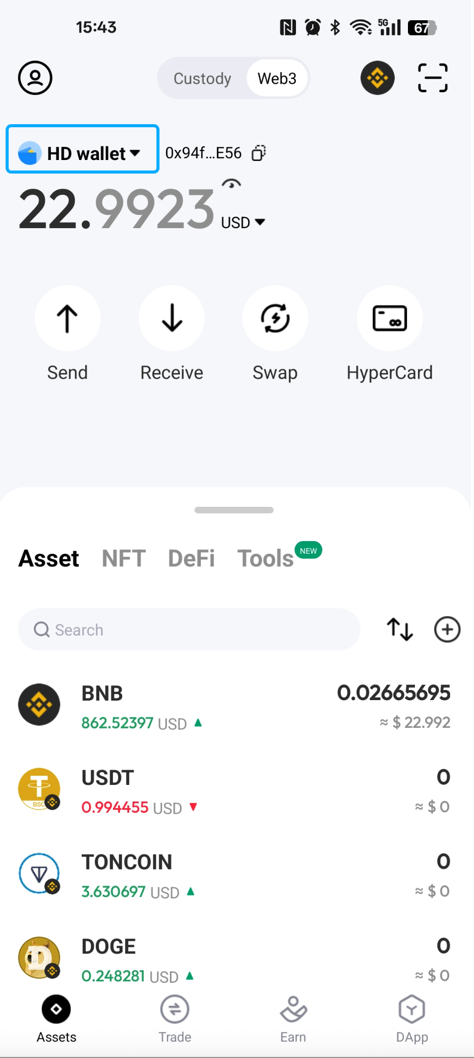 - 打开 App,点击左上角钱包头像,进入钱包清单页