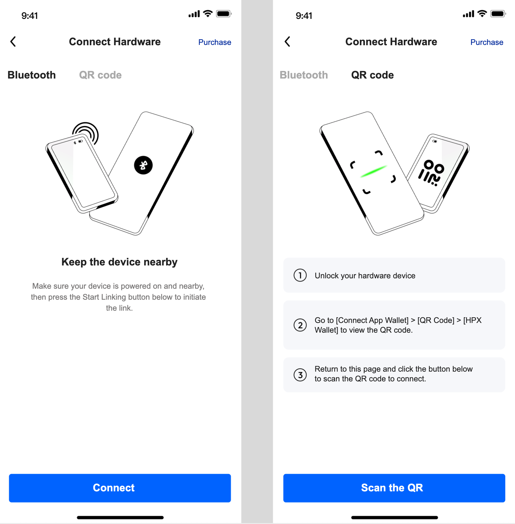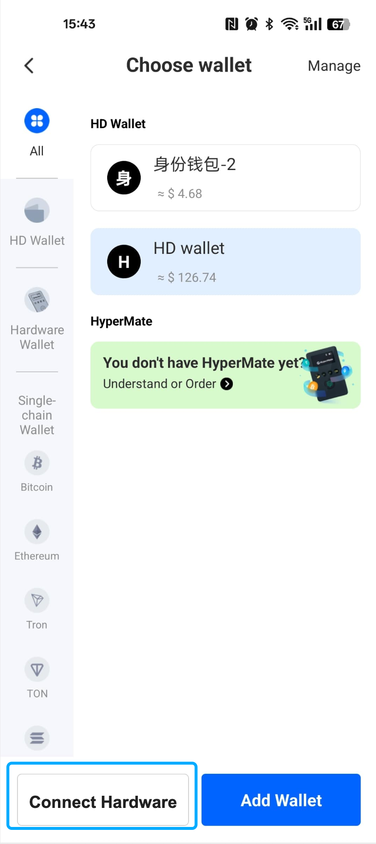 - 点选钱包列表页面下方的链接硬件钱包【Connecting hardware】,也可以在新增钱包页面点选连接硬件钱包【Connecting hardware】