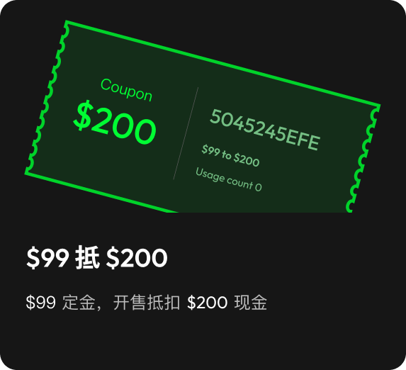 ▸ 等同立即锁定$100优惠,首批现货专属权益