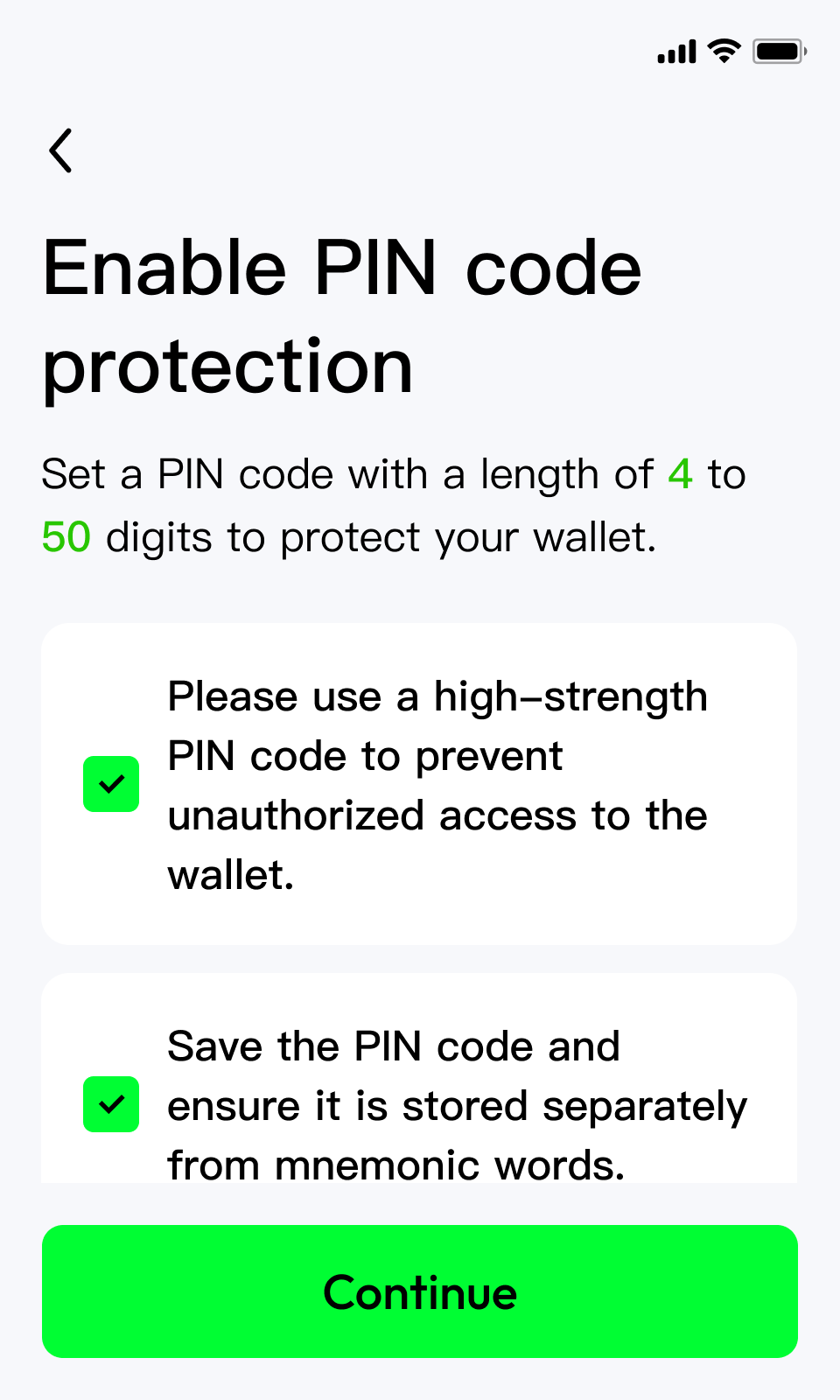 - 再次输入 PIN 码并选择 ☑️ 继续。