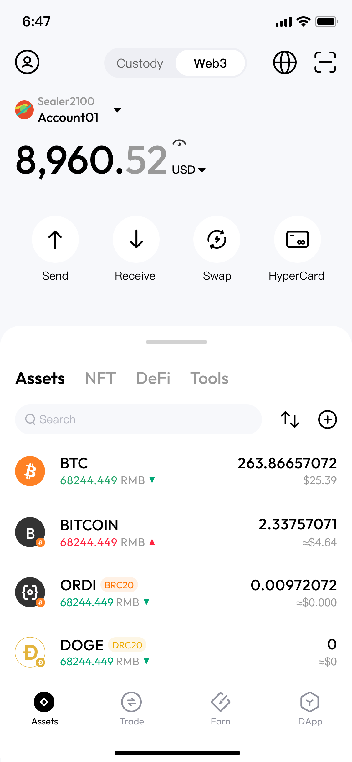 - 当创建完成后,您将看到账户详情页面(如下图所示),这意味着您的钱包已成功连接至 HPX App。