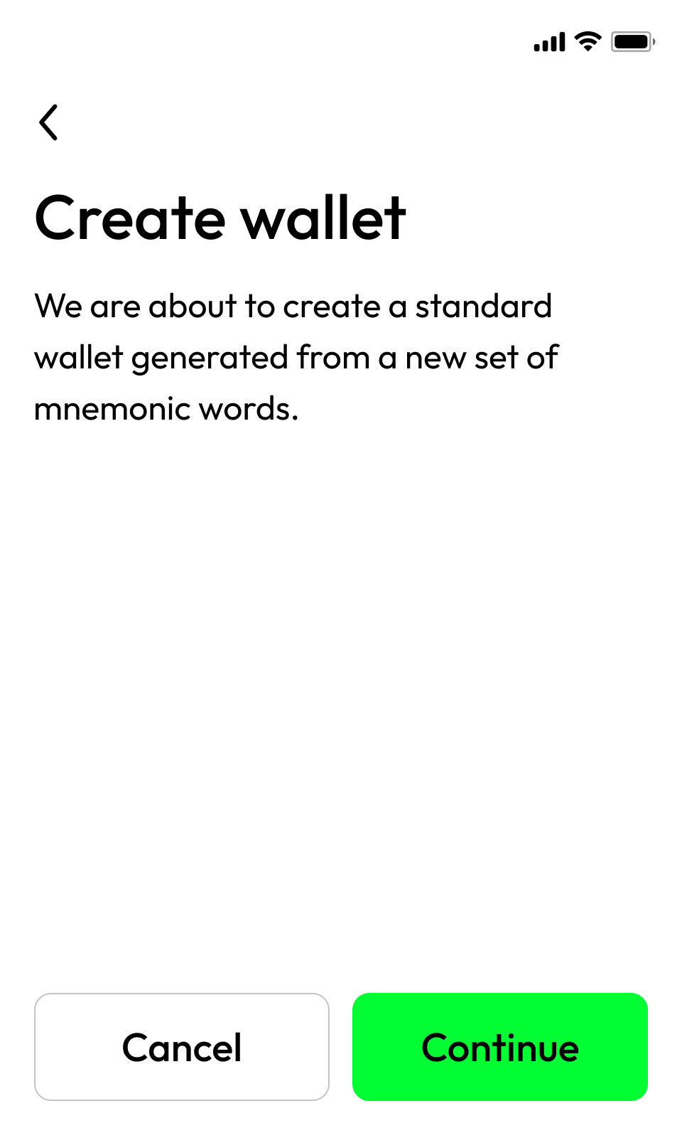 - 选择「创建新钱包 (Create New Wallet)」 并按「继续 (Continue)」 开始初始化新钱包。