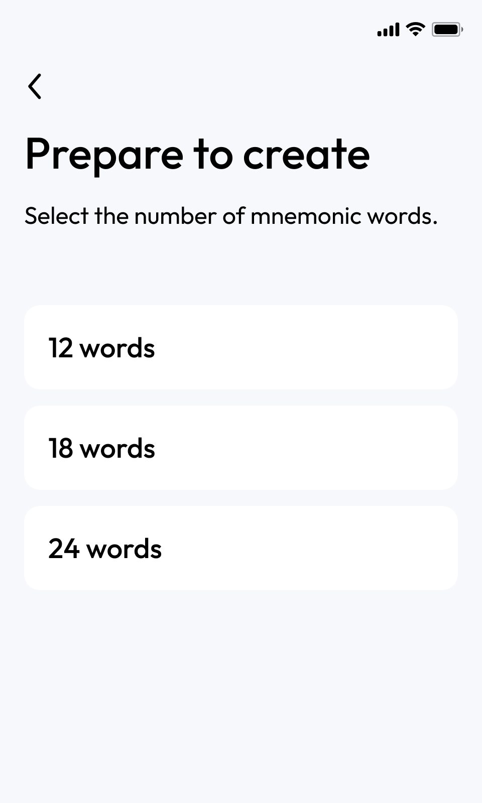 - 在设备屏幕上出现提示时,通过选择正确的单词来验证您在助记词卡上记录下的对应助记词。