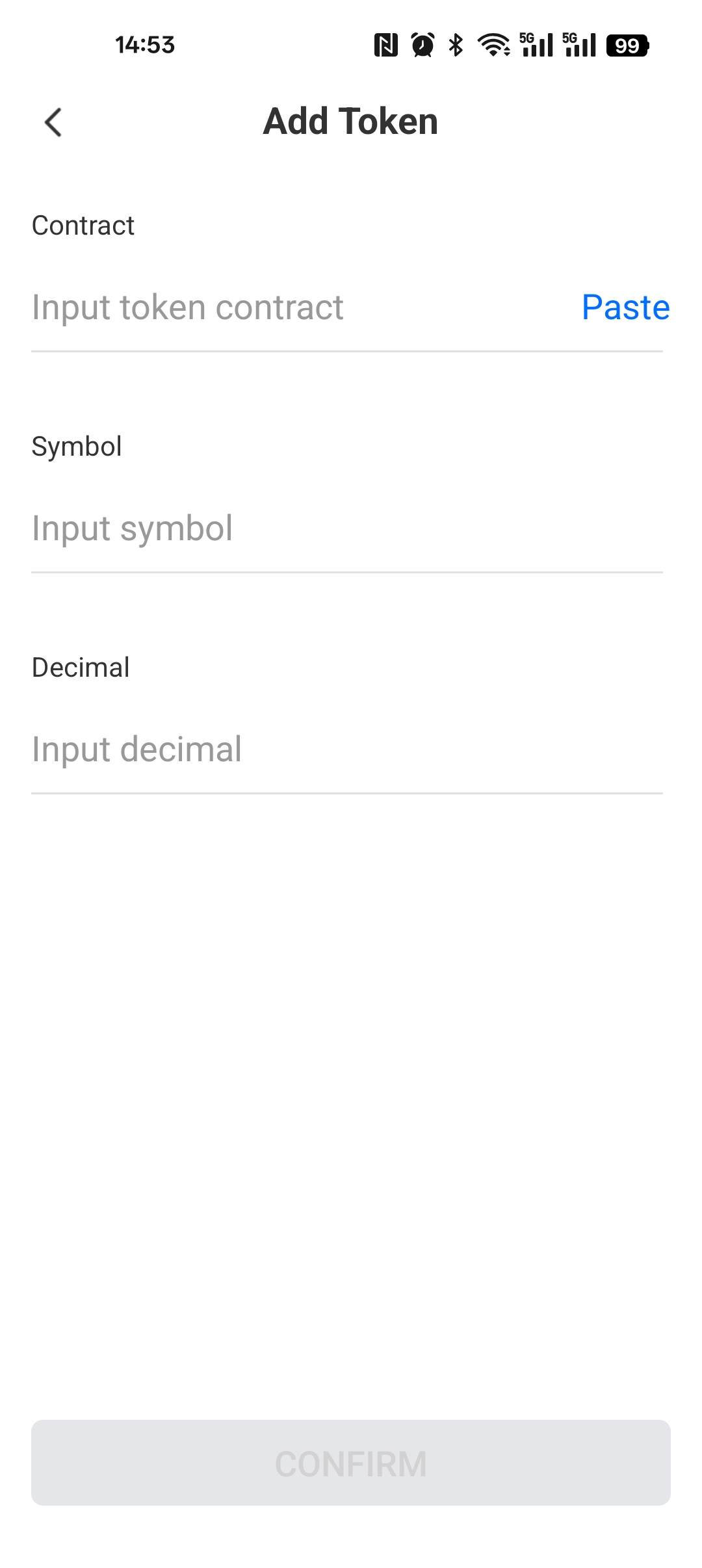 - 填入自訂代幣的合約地址、sybol、Decimal資訊後確認儲存,即可完成新增。