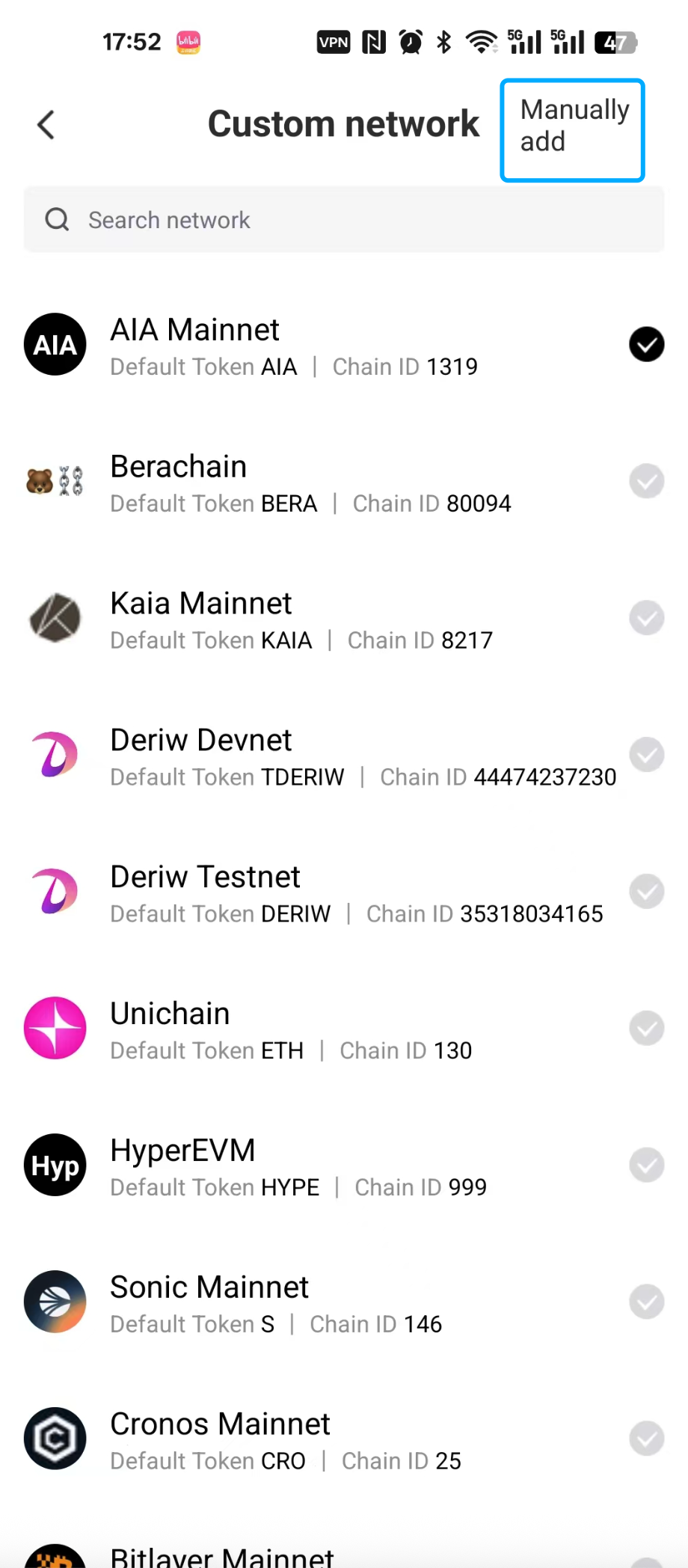 在HPX Web3 Wallet中新增自訂EVM網絡