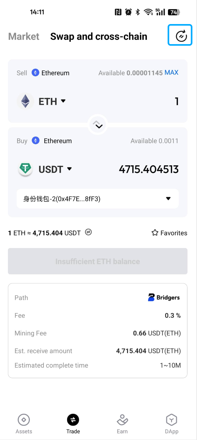 進入閃兌和跨鏈頁面後,您可以根據需要,設定參數。